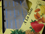 やっぱり四種類の味で、そしてやっぱり、 袋にそれぞれ味の名前が書いてありました。 箱の裏を返すと、「チョコの位置がわかりやすくなりました」と注意書き。 そういう要望が多かったのかなー。 でも、いくつか食べて箱をがさがさやってたら、 順番が入れ替わっていて、やっぱり分からなくなってまーす。 |