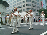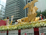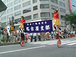 栄のメインストリートが歩行者天国状態に。 もとい、そこをパレードが通るので、見物人は歩道に寄っているんですが。 パン教室前の歩道にこしかけて、坊たちの限界(三十分 笑)まで見てました。 モリゾーとキッコロの着ぐるみに出会えなくて、残念だった。。。うう。 絵や看板を積んだパレードカーは、あったんですけどね。 地元の姫行列でいつも活躍している、消防楽団のおじさんたちが登場して、興奮。 (してるのは、わたしだけだが…。) 白髪まじりのおじさんが、管楽器を吹いて行進しているのは、すごーーくかっこいいのだ!! こんなふうに年をとりたいよなあ。。。とほれぼれ。(おかしい?) 生花いっぱいのフラワーカーや、一輪車のひとたち。 目を奪われるものものがいっぱいでした。 メインの英傑行列は、人垣であまり見えなかったけれど、 馬に乗ってる英雄さんたち、それだけですごい迫力です。 名古屋まつり、バンザーイ。 |