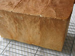 そうこうしているうちに、わーい! 我が家の初プルマンです!!(1.5斤) 今までなぜかこわくて、(ふたしたら、焼け具合が見えないから)焼いたことなかったんです。 しぼみもまったくなく、三つの生地もきっちりそろって、きれい。 (気持ち発酵オーバー?ふたの型にしっかり焼けていたので 笑) 明日切るのがこわいような、楽しみなような…どきどきです。 |