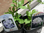 本日、ルリマツリの苗に、やーっと出会えました。ぱちぱち。 そもそも、この花への思いは数年越しで、昨夏も近所の遊歩道で見かけ、 「ああ〜来夏こそは、この花を育ててみたい!」と強く願っていたのです。 さて、春になってそのことを思い出し、苗を探そうにも、まず花の名前が分からない。 ハハも、イモウトも持っているのに。 ずいぶん前にハハにきいた時には、花を目前にしていなかったため、 「なに?夏の青い花?○○ちゃうの?」と園芸マニア?だけに知らない名前を並べてくる。。。 イモウトのベランダで見かけた時も、うやむやのうちに帰ってしまい、分からずじまい。。。 ネットで園芸品種を、写真入りで紹介しているところを探し、 遊歩道の花壇で、実家のベランダで、イモウトのベランダで、 咲いていたあの花を、目を皿のようにして、探す、探す。。。 そして見つけた花が、「ルリマツリ」。 水色の花がジャスミン(茉莉花)と似ていることから、「瑠璃茉莉(マツリ)」とついたのだそうです。 (科は違うらしいのだけど。) 美しい名前だなーとほれぼれして、「ルリマツリ」「ルリマツリ」とうわごとのようにつぶやきつつ、 園芸店に行くたび探し求めてきたけれど、まったく見かけず、出会えず。 ネットで「ルリマツリ成長日記」のようなページを見つけて、真剣に見入ったり… ルリマツリへの思いは、増すばかり。。。 今日もたずねたホームセンターで、やはり探しあてられず、店員さんに、 「あのールリマツリの苗って、ありますかね…」ときいてみた。 店員さん、困ったようすで「あーきいてきます。」と応えたそばから、上品なご婦人が、 「これ、じゃないですか?」と、すぐ横にあった苗をわたしに差し出したのです。 そのつぼみ、あの成長日記に載っていたのにそっくり。 「あーこれです!ありがとうございます!この花です!」と思わず叫ぶわたし。 うれしさで胸がいっぱいに。。。 その苗、名前を「エスカペード・ブルー」といいました。 あはは…和名で書かれてないから、分からなかったのねー。 そのかごのいちばん奥に白花の苗があり、そこに「ルリマツリ」と書かれてありました。 なんともいえない、あのそらいろの花。 今年は、毎日うちで愛でることができるかな。 ものすごーく楽しみ。