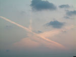 買い物帰りにスーパーの屋上で見た、落日とひこうき雲。 くっきりと太陽のかたちがあり、刻々と落ちていくのに、目を奪われて。 |