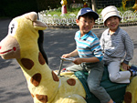 小さい坊ちゃん、上も抜けてしまいました〜! なんと、開けたポストの扉がぶつかって(笑) そして、一緒にぐらぐらしている隣の歯が、ますます頼りない風情になりました。 時間の問題だな。 午後のこと。 パパの友達から、出産祝いの内祝が届きました。 なかみは、あの有名なお菓子、「ゴーフル」。 小さい坊ちゃん、幼稚園から帰ってくるなり箱を見つけ、きくのです。 坊「まま?これなに?」 私「これ?これ、ゴーフル。」 坊「ゴーフル?」 私「そうやで。ゴーフル。知ってる?」 坊「知ってるよ。プールのあの…なにって?」 私「ゴーフル。」 ・・・・・ 大真面目だったわたしも、ここまできてやっと坊の言いたいことが分かり、大爆笑〜! 毎度、楽しませてくれるわ、坊ちゃん。 動物園 5/12 朝からいいお天気。 長らくリアルの用事に追われ追われて、気持ちがよどんでいたからか、 外でぼーっとしたい気分に陥り、「動物園に行きたい…」とぼそり。 そしたらなんと。 大きい坊ちゃん、こーんな「しおり」を作って(笑)この時を待っていたらしい! 笑っちゃいました。