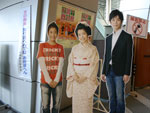 主要キャストの、スチール人形?も、置かれておりました。。 石橋くん、大人気。 石橋くんとだけ、写真を撮ろうとする人たち、続出でした…。 あ、石橋くん背後に写っている「撮影禁止」立札は、あそこに立っているわけではなく、 シジミジル・ミニライブ時に観客の前に置かれていたものが、退却しているんです。 だから、石橋くんとツーショット撮影、OKですよ〜。(笑) そう、シジミジルの復活ライブもあったんです! そのために、この「収録セット公開・最終日」に、大阪を目指したのでした。 以前のストーリーとはまったく関係なく、どんどん転がっていくドラマに、 毎晩ビデオを見てはさんざん苦言を呈しているオットーなのですが、 実際のセット見学とシジミジルライブには大変満足したらしく、 愛想を振りまく康太くんに「がんばってごしなーい!!」と島根弁で声援を送っている始末… 「めっちゃええドラマやった…気がしてきたわ…」 うん…わたしもここにいたら、だんだん、そんな気がしてきたわ…。(笑) 午前中をNHKで過ごした後、少し歩いて、裏通りの安いおうどん屋さんに入る。 おっちゃんが、カウンターの中で注文きいて、カウンターごしに出してくれる、 でも、セルフサービスの事務的な感じとは違う、お店でした。 忙しく他のお客さんの相手をしながら、こっちにも、 「今、大阪城の梅林きれいやで〜」 「男の子は、よう食べるなあ」 「いなり?そこの持ってって〜それで終わりやから!」 と、相手をしてくれる。 おっちゃんがかけてくれる言葉、値段、つゆの味、そして、 お水を入れるコップがモロゾフのプリンカップだったことに至るまで、 あまりに大阪らしいお店だったので、感激ひとしお。 ええお店に入ったなあと、こちらも大満足でした。 午後は5年ぶりに家族で仲人さんのお宅を訪ね、 ゆっくりお話ししてくることができました。 仲人さんとは、わたしの学生時代の最後の恩師で、 わたしは一昨年の夏、ゼミ仲間で同窓会をした折にお会いしたのだけれど、 家族でお目にかかるのは、本当に久しぶりのことでした。 近くの自然史博物館に連れていってくださり、子どもたちもたくさん楽しんで、帰ってきました。 なぜか最近、考えないようにすればするほど、頭から離れなくなっていた思考にとらわれて、 どうしていいか分からなくなっていたのでしたが、 先生にお会いして、お話ししていたら、ひゅっと気持ちがそこから離れて、 ワープしたかのように、少し気楽になりました。 先生の懐かしい雰囲気に触れたせいでもあったのでしょうが、 そのおかげで、わたしが一番わたしらしくあった時代に、ふと近づけたのかもしれない。 振り返った時、自分のことだけに没頭できた時間、 あれこれ頭で考えずに、夢中で生きていた時代、そしてあの日の私、は、 今も確かに、ここにいるわたしを支えてくれているのです。。 あゝ、長い長い、、、いちにちでした。 雑感 3/14 このところ、図書館で借りる本が、仏教関係から人生哲学に偏っていて、 そんな本たちを読みあさっては共感したり感銘を受けたり、していました。 なので、状態もちょっと、偏りがち… そんなところに「おくりびと」を観てしまったので、 死生観ふくめ、強烈にぐるぐるしているこの頃、です。 勢いがあって、人気があったものが突然、それをやめるのを見たり、 ゆったりと優しい世界があって、それがのんびりと続いているのを見たり、、、 ああ、できるなら後者で…無常の人生も、ゆっくりと変化していきたい、と、 細くとも、長く続く大切なものを見つけ、守っていきたい、と、 心からおもうのです。 「今を、切に生きる。 過去を悔やまない、未来を取り越し苦労しない。」 寂聴さんのことばが、胸に染みます。 そしてそれは、ことばは違っても、あちらこちらで目にすることばでもあるのです。。 もう半月・・・ 3/13 うっかりと過ごしていたら、もう半月が経ってしまっていました。。