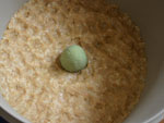 夕べ、水につけたばかりの大豆。 これを煮てつぶし、お世話してくれるお友達のところに、数名が同じものを持って集結。(笑) (お互い、進み具合を連絡しあいながら作業を進めてました。) 麹とお塩、そして仕込むためのケースをひとりひとりに用意してくれていて、 そのなかでまず、崩した麹と塩を混ぜていきます。 しっかりなじんだら、そこに大豆ペーストを投入。 またこれも、しっかりと混ぜていきます。 ハンバーグぐらいの固さが目安で、残しておいた大豆の煮汁で、固さ調整。 (わたしは麹の量を多めにしたせいか、かなり煮汁を足しました。) そして、ソフトボール大のみそ玉を作り、タッパーの中に投げこんでいく! そして上から押さえて、すきまの空気を抜く! ばしっ。ぎゅっぎゅっ。ばしっ。ぎゅっぎゅっ。 「力こめて、なんかむかむかすることがあったら、それもこめてね!」 はっはっは。 一緒に熟成して、おいしく発酵するかな?(笑)