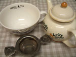 1日に2〜3回は出番があると思われるポットと茶こし、 そしてこれは、主に朝、使うカップ。 ポットは実家から持ってきたもので、もう20年近く前の、 ミスタードーナツのカードポイントの景品です。(このシリーズ、好きだった。。) ちょうどマグカップに1杯半ほどの湯量が入り、1杯ぶんを飲んだあと、 濃くなった残りの紅茶に白湯を少しさして入れると、温かい2杯目が飲める、 ジャストサイズなこのポットを、もう十年以上愛用しています。 茶こしは回転式もありますが、気付いたら、これ一辺倒になってました。(もう真っ黒) さあこれらで、ミルクティーを入れます…