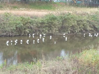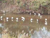 今日は携帯を持っていたので(!)、気がついたら激写していました。 集まって、やはり何かをついばんでいるようす。 たまに羽を広げて鳴いて、隣とはたきあっている(笑)姿も見られて、 魚を狙う場所をけん制しあっているような…。 数えてみたら、コサギ・41羽、物陰にアオサギ・1羽、 コサギに埋もれてカモ2羽(笑)…。 カモは大きいコサギたちに囲まれて、遊んで?いるようにも見えたし、 優雅に飛んでくる新しい子もいて、のどかな風景でした。 都忘れ・植え替え 12/10 届いて放置したままだった、都忘れの苗6株を、ようやくプランターに。 (夏に帰省した折に、母に勧められてカタログ注文した) 白鳥(白)・青空(水色)・江戸紫(紫)、と、すてきな名前つきの3色。 白鳥の土が粘土質で、水をあげてもしんなりしていて、危機を感じていました。 これは春を待たずに、なんとしても今植え替えねば、枯れてしまう…。 数日水を切った状態で、なんとか新しい土に植え替え、たっぷり水をやって、 祈るような気持ちで見守る。 数時間後…元気だった江戸紫はいちばんに、次に青空の葉が持ちあがってきて、 ほっと胸をなでおろす。 けれど、いちばんしんなりしていた白鳥は、半日経っても元気がなくて…。 (新芽は元気に見えていたけれど。) 2日後、ようやくすべての葉に(折れていたのも)水が上がったようで、 よかったーと、うれしくなりました。 根がまわって土が固まり、かわいそうなことをしたけれど、そこは宿根の強さで! 寒いなかでも、地中でしっかり根を伸ばして、元気でいてね。 来春を、楽しみにしています。 コサギの集会 12/10 川べりの遊歩道を、図書館に向けて自転車で走っていた朝、 川の一角?に、白い鳥の群れが! たぶんコサギだと思うのだけど、30〜40羽はいるんじゃないかと目算。 目が離せなくなり、自転車をとめてながめてみると、 きぃきぃ鳴きあいながら、みんなで何かをついばんでいるらしいようす。 魚がいるのかなあ…。 白いサギたちの群れから、少し離れたところに、 アオサギ(特徴を覚えて帰り、調べた!)もいました。 帰宅後、偶然見つけたブログ(写真つき)によると、この川では、 11月〜12月だけ、カワウとコサギが魚を追い立てる光景が見られるのだそう。 そして、ダイサギやアオサギも少し離れた場所で、要領よく魚を取るらしい。 わたしが見かけたこの集会?は、まさに、その場面だったのでしょう。 カワウ(黒い)は、いなかったけどな…。 朝ごはん食べてるのかなーという、予想は当たっていたみたい。(笑) コサギたちが忙しく鳴き、川にくちばしをつっこんでいたのですが、 コサギは集まりすぎて、しばしば奪い合いになるとか。 きぃきぃ鳴いてたのは、そのせいだったのか…。 図書館の帰り、同じ場所を見たら、もう1羽も鳥はいませんでした。 立候補 12/8 大きい坊 「じゅん、卒業式の全員合唱の指揮に立候補した!」 わたし 「えっ!すごいな。立候補なんて、ようしたなあ。」 大きい坊 「うん。先生に、『誰もいないからどう?』って言われたから。」(爆笑) 先生の誘い方が可笑しくて、ウケました。 また、それに気軽にのる坊ちゃんも…。 その後、もうひとり立候補があったらしく、結果はどうなるか分からないのですが、 このやりとりが可笑しくて、それだけで充分、立候補の意味がありました。(笑) ぶーん? 12/6 お風呂からあがって、リビングへやってきた小さい坊ちゃん。 「・・・なんか、音しない?」ときくので、 耳をすますと、かすかにうなりのような音が聞こえる。 ぶーん。 「・・・ん?外の車の音じゃないの?」 ぶーん。 それにしては、ちょっと近いような…そして、こもった音。 ぶーん。 注意して耳をそばだてていると、間隔をおいて鳴りつづけている。 ・・・昔、小さかった頃の小さい坊ちゃんが(ややこしい)、 自分の閉じた口を手でふさいで、「ぶーん。ぶーん。」とうなって、 携帯の鳴ってる音を模写していたことを(爆笑)思い出したわたしは、 (もしかして、ふざけて自分でやってる?)と思い、 「いじゅ?どこで鳴ってる?」と聞き返した。 ぶーん。 小さい坊ちゃん、音の元を探して、パンツのおしりに手をつっこんでいる。(笑) 何やってんのかなと見ていると、「あ。」と不意に握りこぶしを出して、 「ハエや。」と言うと同時に、空中に向かって手を開いた。 ぶーん。 飛び立ったハエが、照明のカバーのふちにとまった。 ・・・・・・ 二人して目が点になって、次の瞬間、 大爆笑!!! あ、ありえへん…。 「なんでー!なんで、こんな冬に、ハエがおるん?!しかも、パンツの中に!!」 おなかをかかえて、笑い転げるわたし。 「知らんよ。もとから入ってたんやもん。」 「ハエも寒くて、洗濯物のなかで休憩してて、そのままたたまれてかごに入れられたんやなあ。」 「それでも、はいても出ていけへんかったんやなあ!」 後から来た大きい坊ちゃんも、横から参加して大爆笑。 わたしは大笑いしながら虫取りあみを取りに走り、動きのにぶいハエ