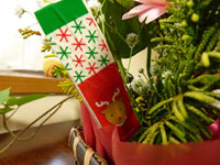 いつのまに用意してくれてたんでしょう。かわいいクリスマスのフラワーアレンジ。 さらに。。