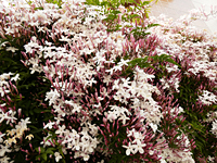 からりとした晴天が続き、ジャスミンが2日でほぼ満開に! むせかえるような(文字どおり)香りに、鼻がやられてしまいそう…。 日中よりも夜のひんやりした空気に、香りが溶けこむように感じます。 ああ…初夏のにおい。