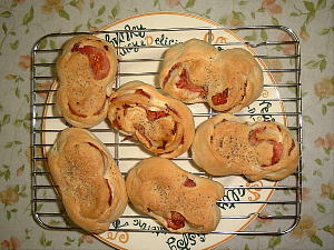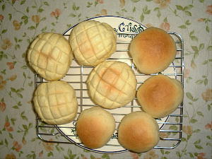 焼きたてです!! 今しがた、パンを焼いた。実に20年ぶりのことである。 オレンジページの最新号の特集が、「90分で焼きたてパン」。先日それをチェックした時、「パンか〜」と思った。オレンジページは好きな雑誌で、たまにいい特集の時だけ買う。いつも特集のチェックだけはしている。今回はパン。パンというと、「めんどくさい!(何でもそれか・・・)時間がかかる!手順がややこしい・・・力が要る!」と、どうしてもそういうイメージがついてまわる。 小学生の頃、一時よく作ったけれど、なにせ当時は(最初の雑記にも書いたが)魚を焼くグリルで焼いていたし、「パン生地を100回たたきつける!」という激しいレシピを実行していたので、作るのは大変な作業という思いこみがあった。あれ以来、パンは作ったことがない。 そんなわけで、この特集は敬遠して終わり、と思っていた。 ところが、である。今朝、出向いた病院にこの最新号が置いてあった。半分立ち読み気分でちらちらと見ていたら、パンの写真にやられてしまった。おいしそう!決定打は、「メロンパン」のレシピだった。数週間前、「べとべとのメロンパン」にやられてしまった私は、「ぱりぱりのメロンパンが食べたい」とひそかに思いつづけていた。しかも、ハイジの白パンも載っている! これは作るしかない、と診察までに決心し、頭の中はそこから先、メロンパン一色になってしまったのである。 帰り道のスーパーで速やかにオレンジページとイーストと強力粉を購入し、帰宅するなり作る準備にかかった。昼食も用意しなければならない。発酵の時間も計算しながら、ものすごい勢いで作りはじめた。オーブンに入れるまで2時間弱、間に昼ゴハンも作りながら、ほぼタイトルどおり「90分で焼きたてパン」となった。ふだんだらだらしている私だが、こういう時に限り、こういったハヤワザが可能なのだ。 こうして焼けたパン。半分はそのまま基本のバターロール、半分はメロンパンだ。いいタイミングで子どもが昼寝から起きてきた。いち早く見つけて「パ!」と欲しがるので、二人でメロンパンを半分こ。幸せなひとときである。味もなかなか良し。市販のもののように甘すぎず、柔らかくてとてもおいしい。問題のビスケット生地が、固く焼けているわりには、歯ごたえに欠けるのだけれど・・・。まあ、これも良しとしよう。 次のターゲットはハイジの白パンである。雨がやんだら、スキムミルクを買ってきて作ろう。あと、ベーコンフランス。しばらくパン焼きへの情熱は続きそうだ。 今までパンを焼くのを敬遠していたわりには、友達と、いつかパンやさんをやろうと言っていた。彼女は元銀行員なので、「お金の計算は私がやるから、パン焼いてなー」と役割分担も決まっている。今はオーストラリア・パースに住んでいる彼女、日本のパンを恋しがって、パンやの話をよくしているそうだ。帰国の暁には、一緒においしい焼きたてパンを、たくさん食べたいなあと思う。それはもちろん、パンやさんのパンなのだろうが、その日までに、手作りパンの方も腕を上げておきたいなあと思った次第である。 |