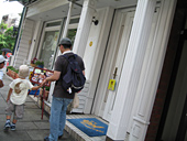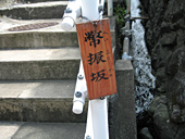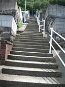 「ここから見る眼鏡橋が、いちばんきれいだよ。 皆さん、あの橋のたもとまで行かれるけど」 そういっておじさんは、眼鏡橋のことをあれこれ説明してくれた。 そして、家族で記念写真も撮ってくださった。 「ここをずっと行くと、子どもさんは面白くないね、寺町通り。 お寺さんが並んでるね。左に行くと興福寺、 まっすぐ行って右に折れると、崇福寺。」 「あーその、崇福寺の近くに、今から行くんです」 「あーそう。私は、崇福寺さんで今から勉強会があるの。」 そういって、おじさんは笑って去っていかれました。 ![]() 少し中島川の川べりに降りて遊んだあと、興福寺を目指します。 ![]() 寺町通りを歩きはじめると、そこに「幣振坂」の札が! いきなり現れたので、びっくり。 映画『解夏』のロケが行われた場所です。 …ということで、上ります。 が、てっぺん(風頭公園)まで上るには強烈な距離と階段なので、 途中までですが…。 +++++ どこまでも墓地が続く階段を、わき目もふらず、 ただ上を目指して、ひとり上る。汗がこめかみを流れる。 上って上って、カーブするところで振り返ったら、そこには、長崎の町がありました。 坂の下では聞こえなかった、船の汽笛がここなら聞こえます。