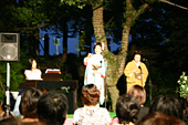グラバー邸横の展望台からの夜景。 さっきの写真と、同じ方向です。(少し低い) 夕暮れから、灯ともし頃の長崎の町。 夜風に吹かれながら「ぜいたくだねえ…」とひとりごち、 手すりにもたれてぼーっとながめていた。心がほどけた時間でした。 坊たちは夜景なんて興味ないので、(笑) その間、鯉にエサをやって間を持たせる…。 +++++ 日もとっぷりと暮れたので、ホテルに帰ることにしました。 前夜、夜行で過ごした疲れもあることだし。 おみやげものやさんが軒を連ねる南山手の坂道も、 ほとんどが店じまいしています。 そのなかに…「雨やどり」というお店を発見。 さっき、「自由飛行館」で教えてもらった、さだまさし専門店です。 (まにあっくでごめんなさいませ) 閉店準備中だったのに、とあるまにあっくなお客さんに誘われ、入店。 オット、いたく気にいったらしく、今夜書く予定の絵はがきだけ買って、 明日もう一度来よう…とお店をあとにしました。 ああ、そんなのばっかりの旅…。(笑)